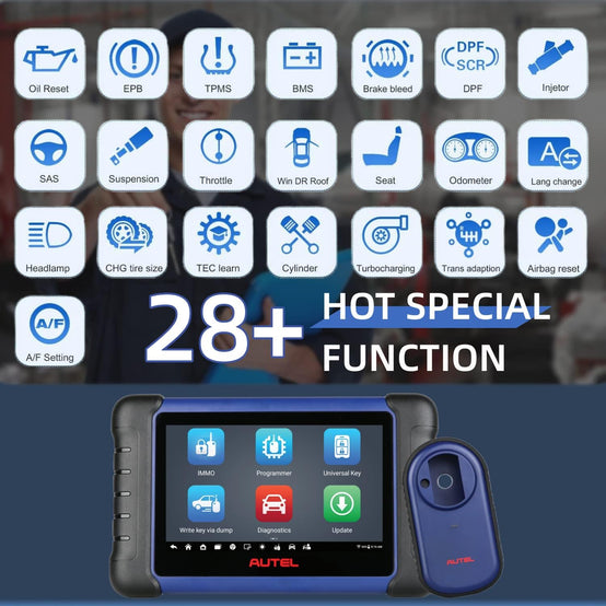 Autel IM508S is the most cost-effective IMMO tool on the market, it is not only a professional keychain programming tool, but also an excellent two-way scanner! The latest version of IM508s will bring you a whole new experience: professional grade immobilizer and key fob programming, real active test, all system diagnostics, 28+ service, extended coverage and more. Great product for workshops and DIY enthusiasts.