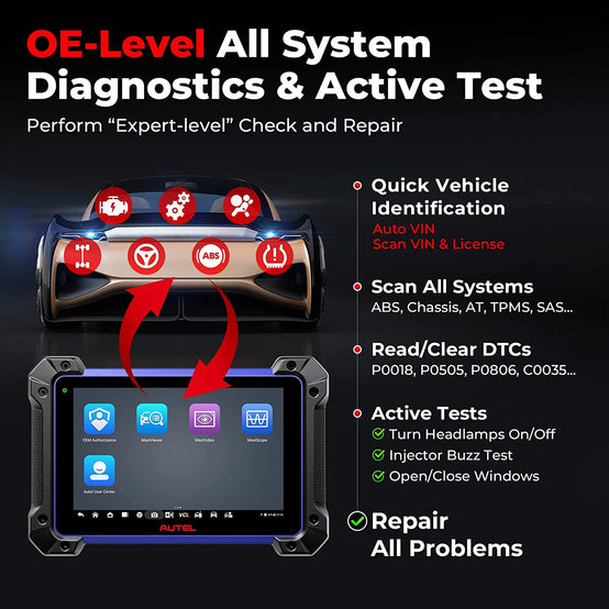 [OE-Level All System Diagnostics & Active Test] One-click Auto VIN or Scan VIN/License to identify vehicle information and fast activating diagnostics. Autel IM608PRO II automotive scanner operates OE all-system check for all accessible systems including ABS/TPMS/IMMO/Engine/Windows, etc. Autel programming tool can do active tests to send action commands, monitor the system running, and accurately pinpoint the problems that could be the engine, injector, windows, doors, fual pump, etc.