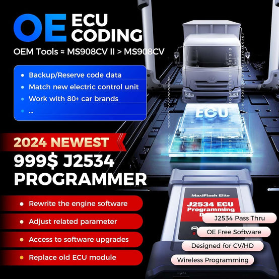 - 【Local-Smith Coding + J2534 Programmer】Same as MS909CV, MS908CV II features advanced CV ECU coding that normal diagnostic tools don't support. It allows you to adjust vehicle road speed, flash CV personalized functions, repair failing coding processes, etc. A J2534 programmer designed for CV helps to fix drivability & fu-el efficiency, reduce power loss, erase fault codes, program the latest software version, etc. without using expensive OE scanners but functioning well at OEM level.