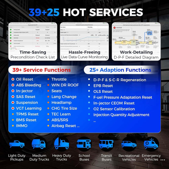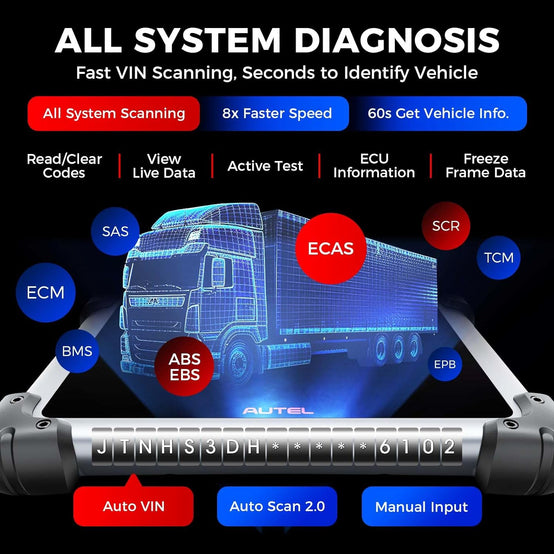 - 【64+ Services, 1 Scanner for 99% Issues】An affordable choice to compete with OEM scanners with more advanced functions while having less budget. Autel MS908CV II features 39+ services & 25+ adaptions for 150+ brands that are easy to navigate and more outstanding than other CV diagnostic scan tools. Help to solve more HD special issues including oil reset, D-P-F regeneration, SCR reset, VGT learning, SAS reset, injector coding, air suspension, ABS bleeding, etc.